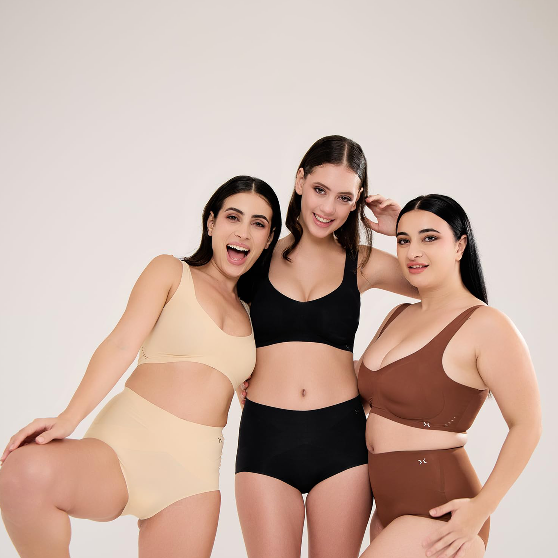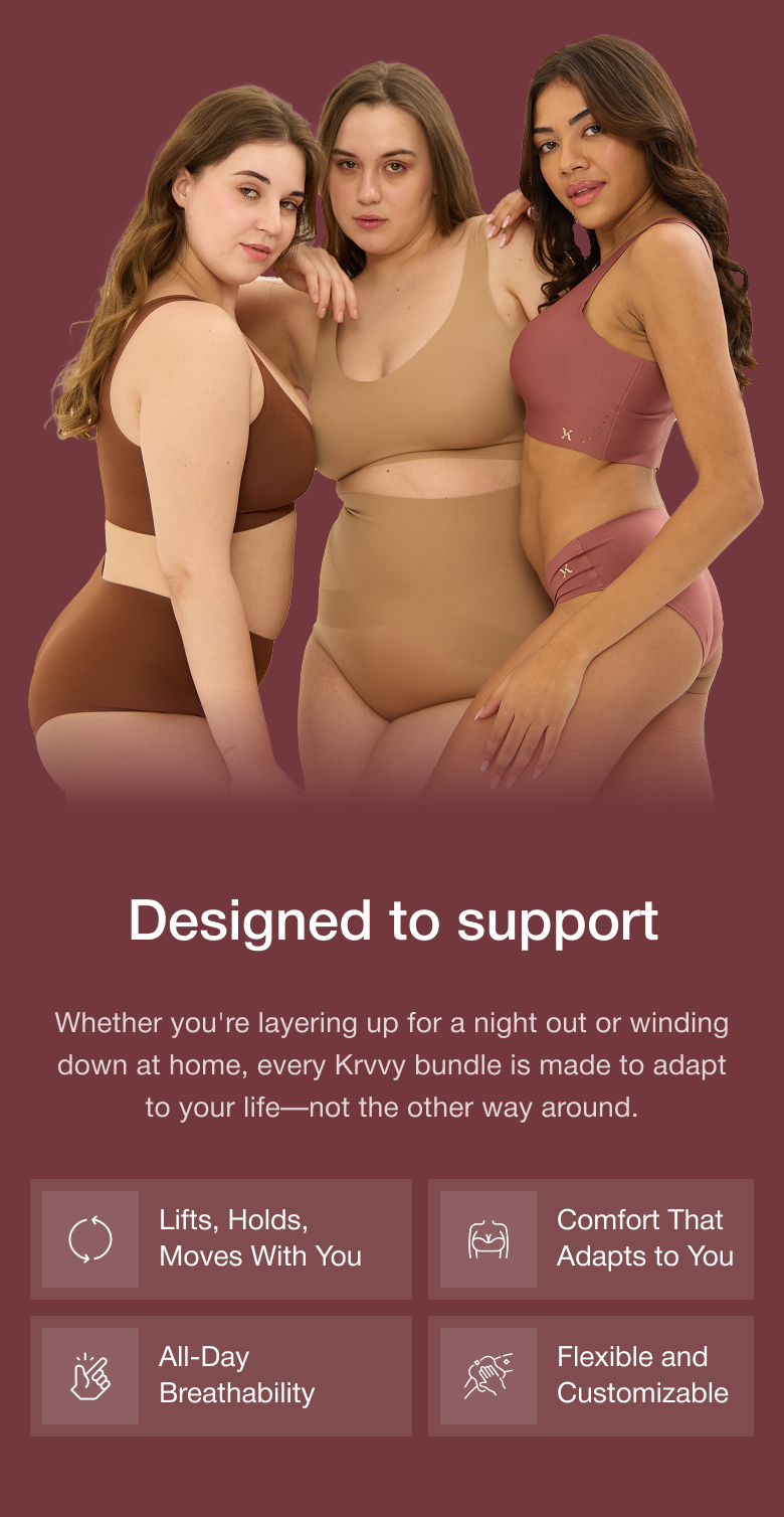Say hello to your new everyday essentials—built for movement, made for you. With a wire-free bralette, buttery-soft underwear, and shapewear that smooths without squeezing, every piece in this bundle is crafted to deliver unmatched comfort, invisible wear, and effortless style from top to bottom.