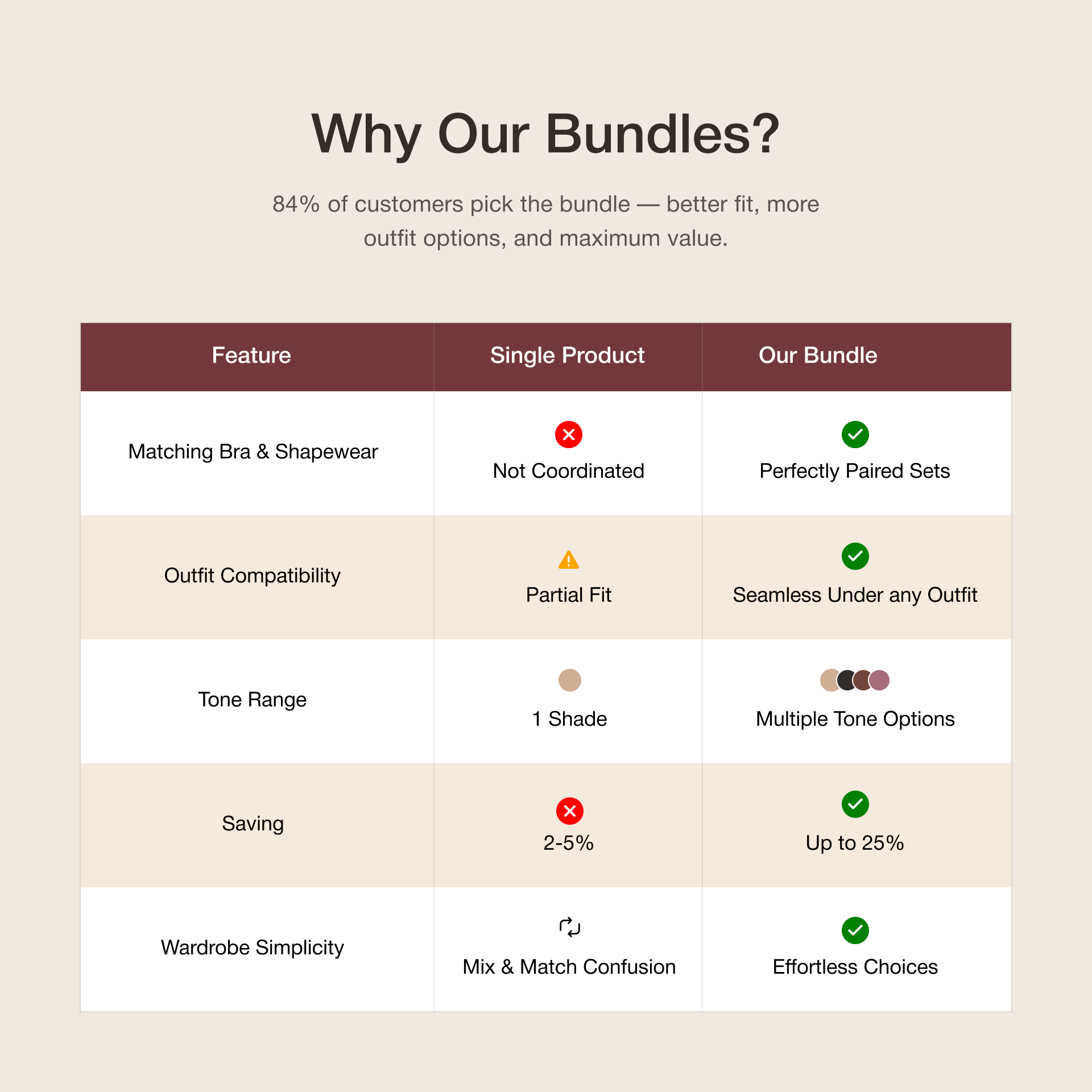 The bundle is available in sizes XS to 5XL, so it’s made to fit and flatter every body type. Just refer to our size chart for the best fit!