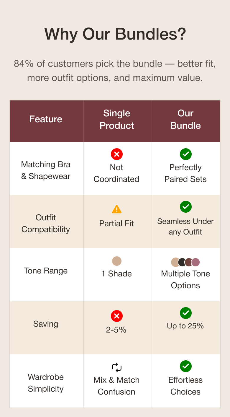 Absolutely. Both the bralette and shapewear have a seamless, no-VPL (Visible Panty Line) design that stays invisible even under tight outfits—dresses, sarees, jeans, or bodycon styles.